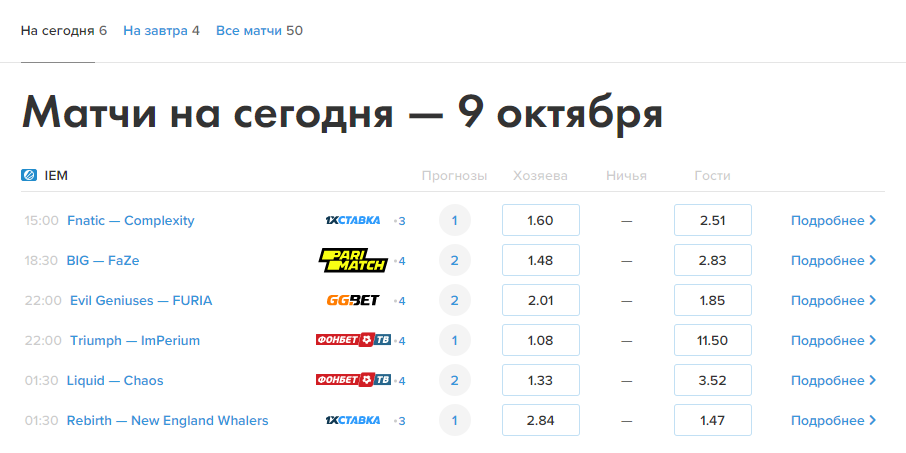 Затем мы предлагаем коэффициенты на предстоящую перестрелку и статистику личных встреч. Если формат турнира предполагает нечётное количество карт, то букмекеры дают из основных исходов только П1 и П2, т.к. ничья невозможна, а если чётное – добавляются коэффициенты на Х.