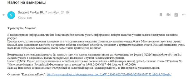 Служба поддержки – это лицо букмекера. По общению в онлайн-чатах игроки часто создают впечатление от компании. К сожалению, Pin-up не выдержал даже обычных тестов, хотя внешне и окошко СП выглядит привлекательно, и общаются операторы со смайликами.