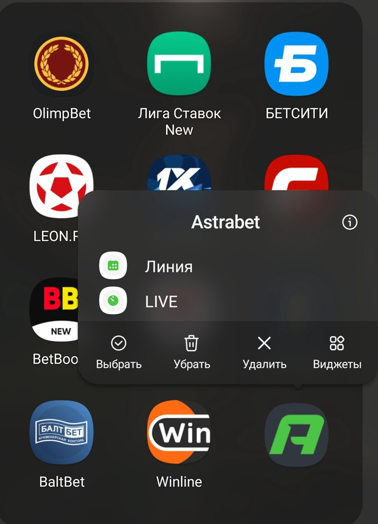 Приложения «Астрабет» унаследовали положительные моменты, свойственные продукту «1хСтавки»: это и возможность ставки в один клик, и уведомления по интересующим игрока событиям, и простота интерфейса. Как и в случае «Иксов», долгое нажатие на ярлык приложения активирует функцию быстрого перехода в линию или лайв (у «Мелбет» аналогично).