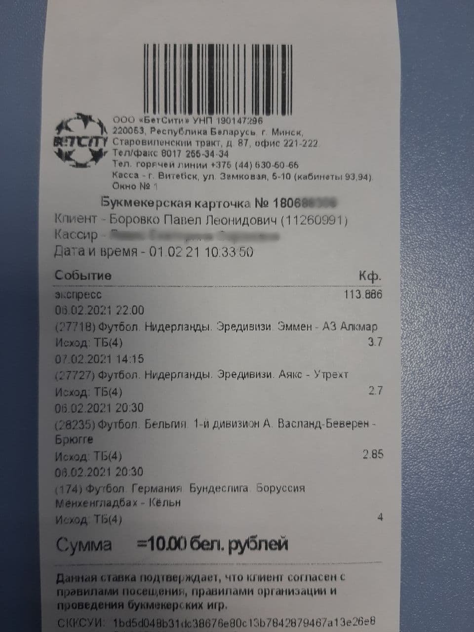 Когда делаешь ставку в окне ППС, то обязательно протягиваешь личную карточку кассиру, чтобы он считал штрих-код. Выплату можно получить без карточки, но с паспортом. Забрать получится только свой выигрыш, потому что на каждом купоне есть ФИО поставившего.