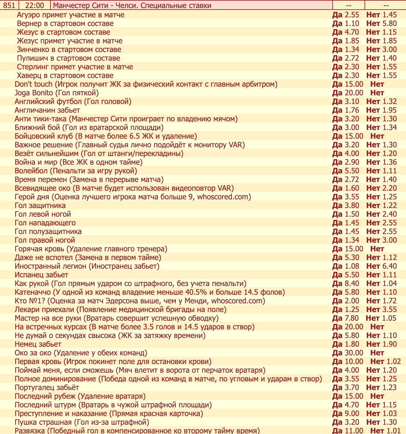 17:00 Букмекеры соревнуются в ширине росписи на финал, но некоторые вышли на новый уровень. Например, «БЕТСИТИ». Вы просто посмотрите на эту линию!
