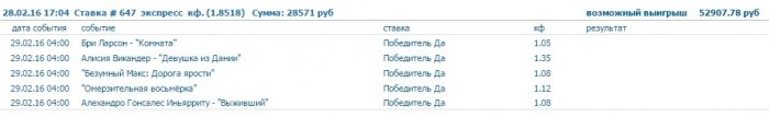 А ставить буду на «лучшую женскую роль второго плана, где я у Алисы Викандер не вижу конкурентов. Ее победа оценивается за 1.33 – это вполне нормально для моего экспресса.