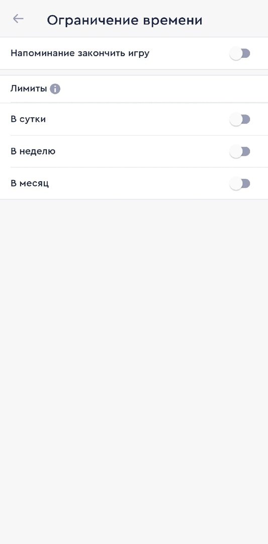 Ограничение времени — можно установить лимиты на количество часов в день/неделю/месяц, проведённых на сайте или в приложении конторы. Кроме того, букмекер позволяет настроить таймер с напоминанием закончить игру через установленное количество времени.