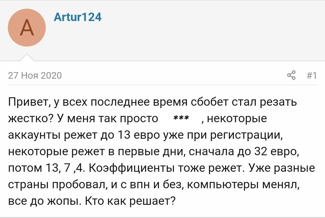 В какой-то момент руководство компании решило резко изменить политику: пришли порезки плюсовых игроков даже на бигах, снижение коэффициентов для отдельных клиентов, а СНГ-игрокам при регистрации автоматически выдавали лимиты в 50 долларов.