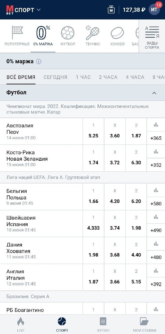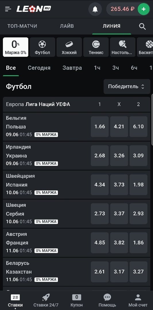 Ну а если собираетесь зарядить на предстоящие матчи Лиги наций или финальные матчи НБА и НХЛ, то нулевая маржа именно для вас.