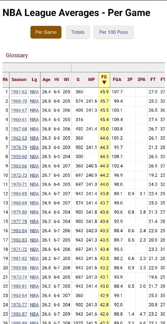 На Basketball Reference собрана огромная статистическая база по всем сезонам НБА — пользователь может как ознакомиться со статистикой конкретного чемпионата, так и сравнить показатели по сезонам: от среднего возраста игроков до показателей эффективного процента игры.