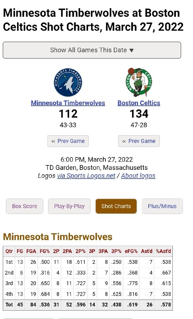 Но чем ближе к сегодняшнему дню, тем обширнее и детальнее предоставляемая статистика — Basketball Reference откровенно впечатляет количеством предлагаемой информации. Для недавних матчей доступно огромное количество продвинутой статистики: от достаточно распиаренных метрик, вроде очков за 100 владений и эффективного процента игры, до процента блокированных бросков каждым баскетболистом по отдельности.