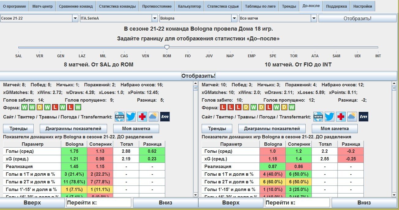 Раздел же «До — после» позволяет сравнить результаты команды в различные временные отрезки: например, игрок хочет отследить, как много футболисты стали фолить при новом тренере, или посмотреть, как клуб вкатился после новогодней паузы.