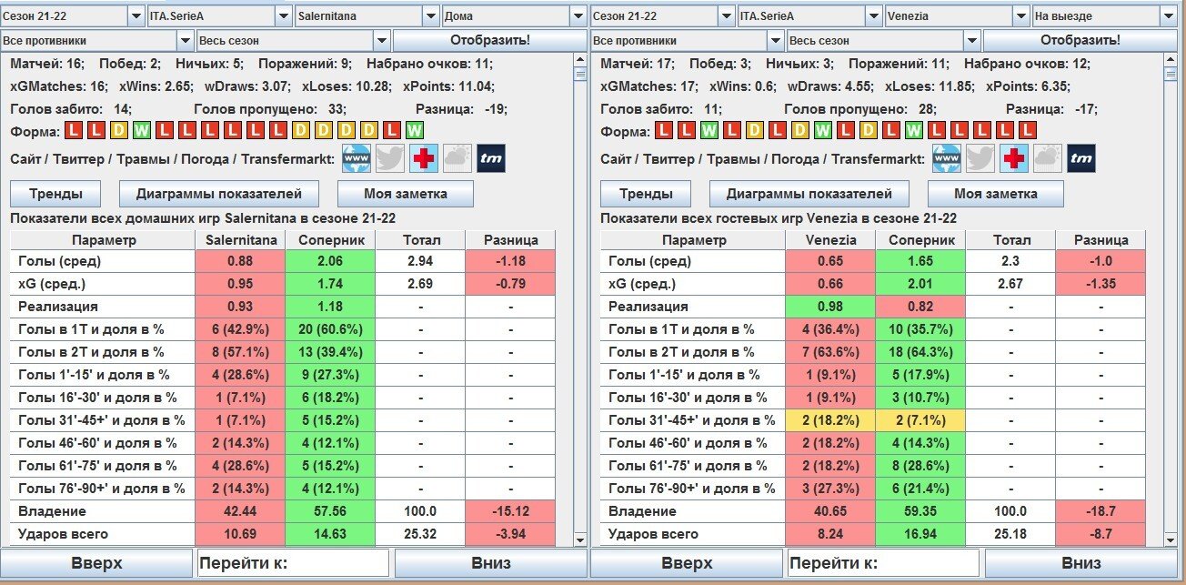 А вот со второй всё не так очевидно: эта функция выставляет в других разделах клубы, участвующие в выбранной встрече. Если кликнуть на кнопку «Задать значение фильтрам» рядом с игрой «Сочи» — «Нижний Новгород», то в разделах «Сравнение команд» и «Противостояние» первым автоматически станет сочинский клуб, а вторым — нижегородский. Функция заметно упрощает работу с ПО: выбор команд вручную, даже с быстрым набором, занимает заметно больше времени.