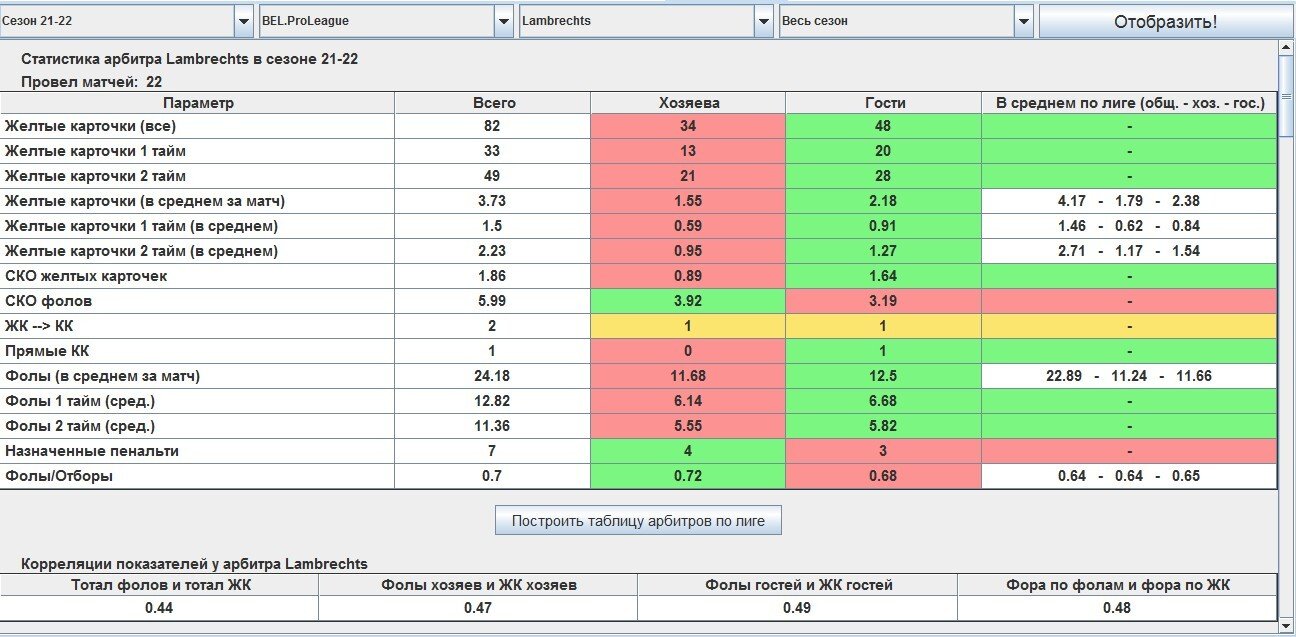 Приложение даёт возможность построить таблицу арбитров по лиге, а также воспользоваться слайдером проходимости.