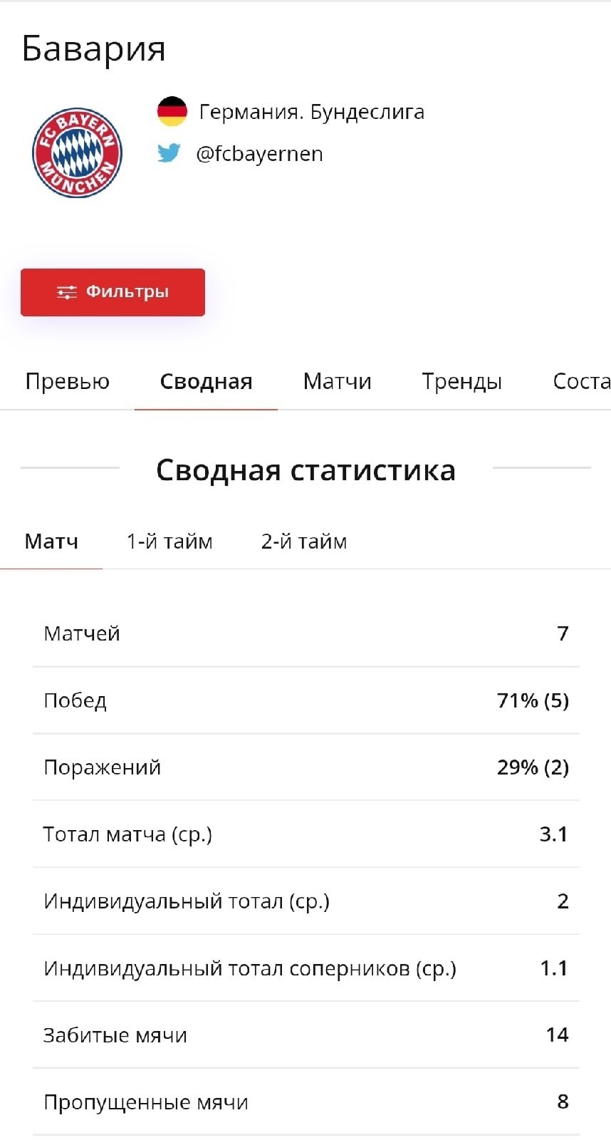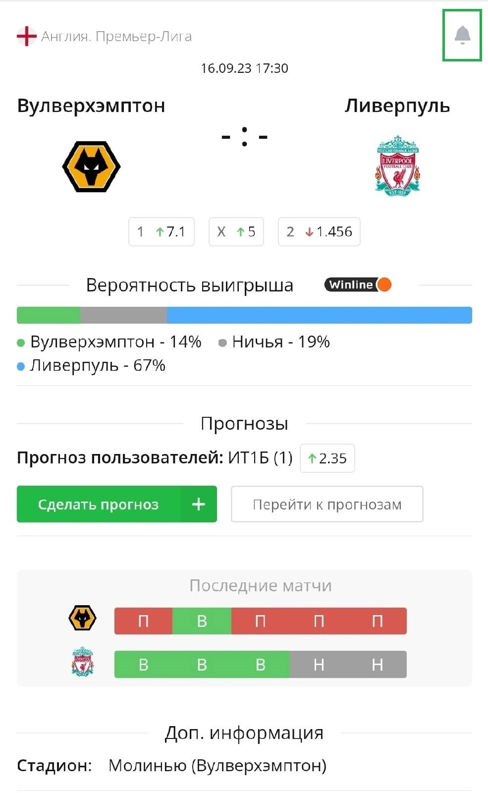 Матч-центр с прогнозами.