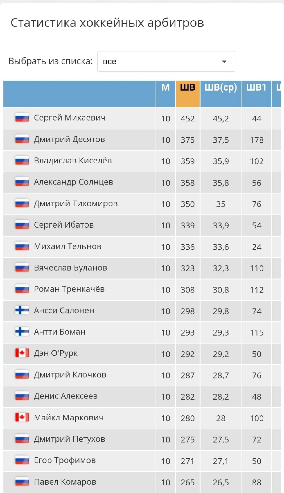На ресурсе представлена статистика не только футбольных, но и хоккейных судей.