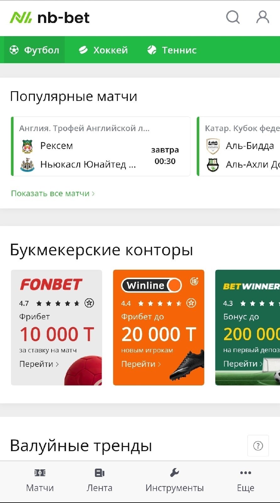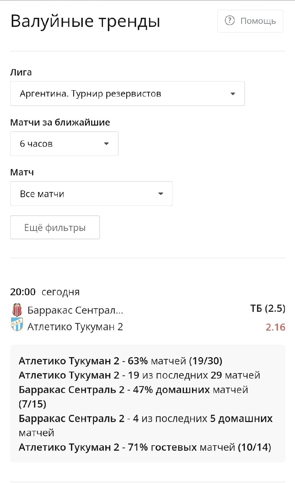 Валуйные тренды — ресурс ищет статистические закономерности, определяет вероятность их продолжения и ищет валуйные коэффициенты в линии. Звучит интересно, но минус в том, что кэфы на сайте и в линиях частенько не совпадают — валуй был найден, но его уже прогрузили.