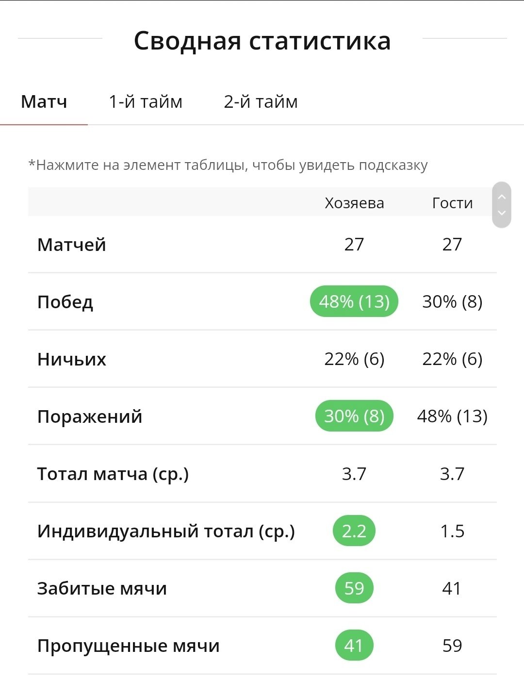 Ровно тот же функционал есть и по каждому клубу: можно найти самый результативный в лиге во 2-м тайме, а можно сравнить количество ничьих с предыдущими сезонами.