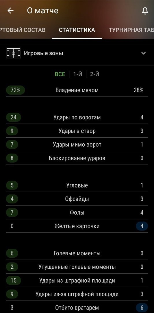 По конкретным событиям ресурс предоставляет не только стандартные статистические выкладки (угловые, удары, карточки и офсайды), но собирает более продвинутые метрики: количество ударов из штрафной площади и упущенных голевых моментов, а также карты действия команд на поле. Для оценки характера встречи без просмотра матча — самое то, особенно в лайве.