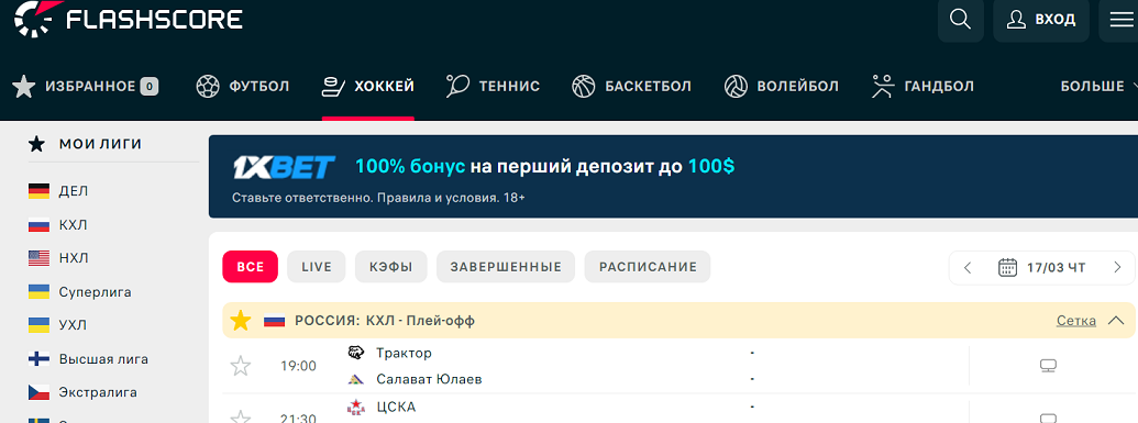 Как известно, популярный среди бетторов FlashScore перестал показывать российские чемпионаты, в том числе РПЛ и КХЛ, которые приближаются к кульминации. В связи с этим возникает закономерный вопрос — где же теперь отслеживать результаты российских турниров.