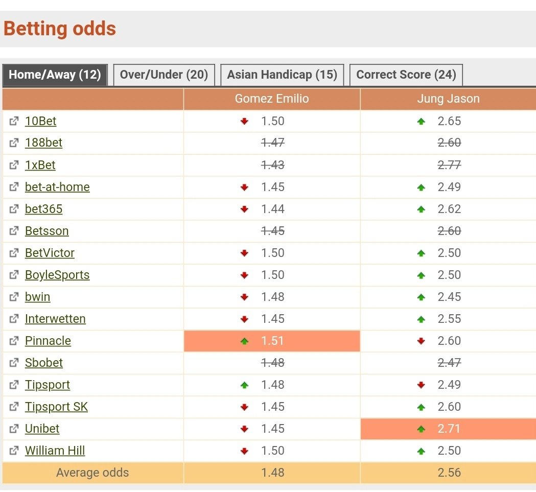 Тут же можно найти котировки зарубежных букмекерских контор, а кликнув на интересующий исход проследить за движением коэффициентов. Для матчей турниров серии ATP кэфы даются на исходы, тоталы, азиатский гандикап и точный счёт, а вот для матчей турниров рангом пониже зачастую лишь П1 и П2.
