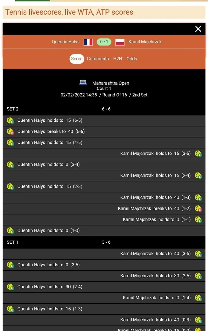 Лайв на портале позволяет следить за встречей в формате «очко за очком», но во время матча не предлагается ознакомиться с подробной статистикой — вся информация по двойным ошибкам, эйсам и эффективности первой подачи будет доступна лишь после завершения встречи.