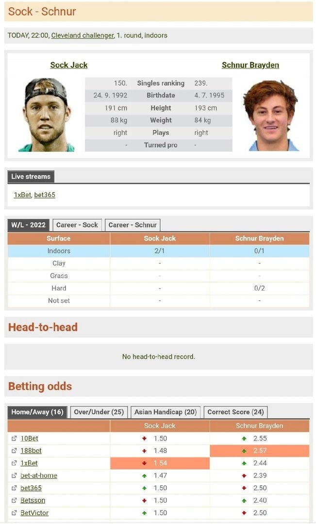 По каждому конкретному матчу нет подробной статистики: двойных ошибок, эйсов, эффективности первой подачи и прочего здесь не найти. Зато можно ознакомиться с архивом коэффициентов.