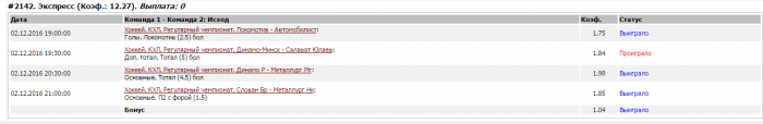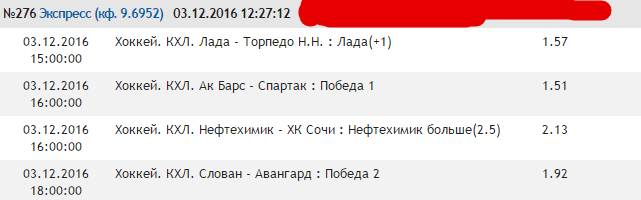 Ак Барс проиграл Сочи, тем самым прервав домашнюю серию из 11 побед. Жаль что на том матче, который я брал! Ну да ладно. Почему так сыграли!? Скорее недооценка соперника, плюс легкая победа над Торпедо внушала вкус еще одной крупной виктории. Билялинтидов обещал разобраться, но мы это посмотрим. Про барсов особа писать и нечего, все у них в порядке, и банальный провал в одной из игр.