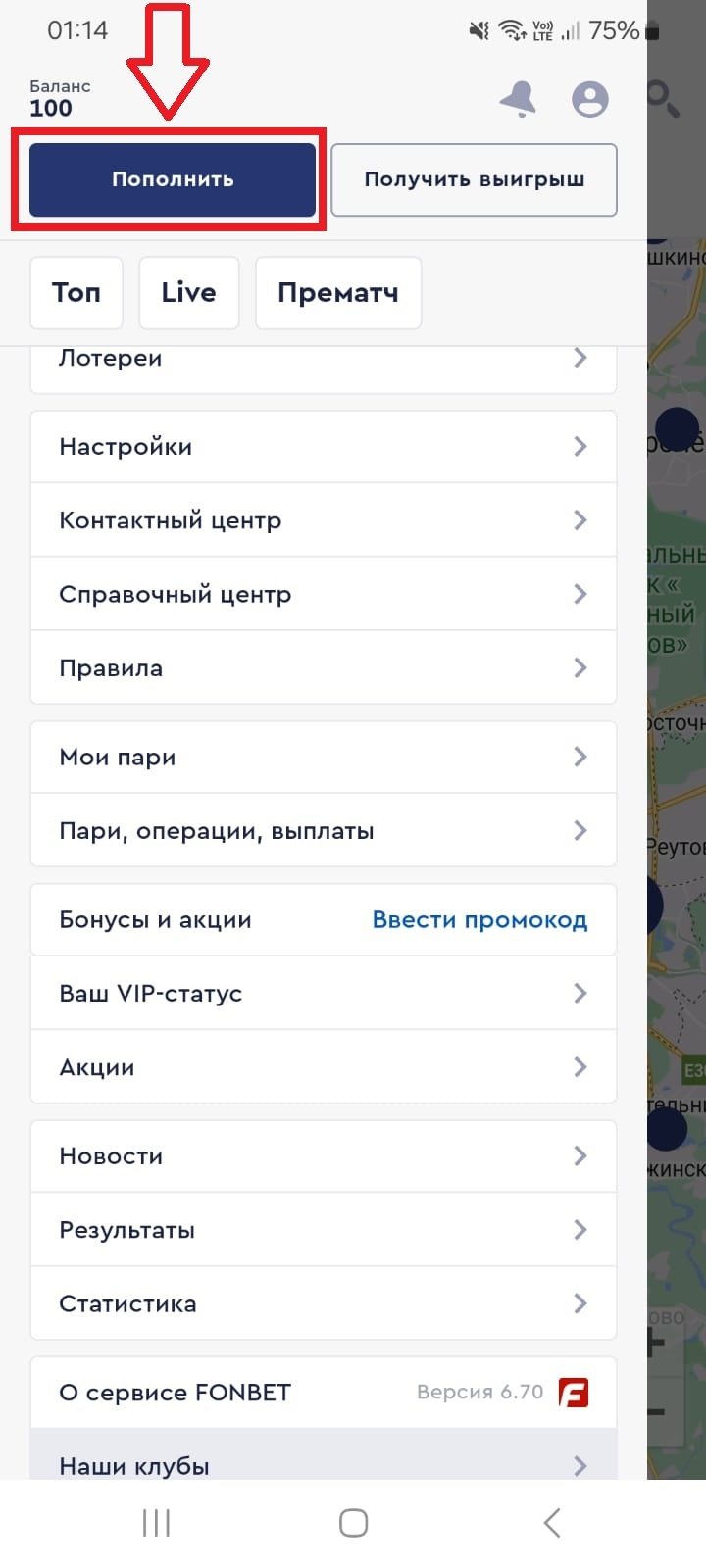 в ППС «Фонбет» (необходим паспорт, все адреса клубов находятся в меню приложения в разделе «Наши клубы»);