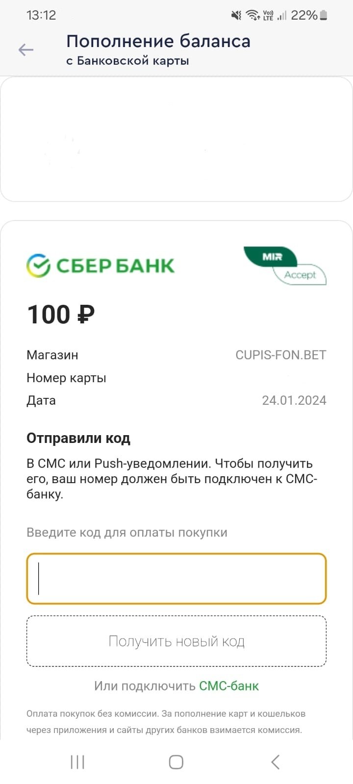 Выбрав, например, банковскую карту, укажите сумму и нажмите «Пополнить», после чего вы автоматически окажетесь на странице пополнения баланса, где нужно заполнить основные реквизиты карты, сохранить (или нет) данные для будущих платежей и вывода денег и кликнуть «Продолжить». На номер телефона, который подключён к СМС-банку, придёт код подтверждения операции. Введите его в специальном поле, это завершит процедуру внесения средств.