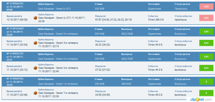 - Победа «Гран Канарии» с форой (-9,5) очков. В БК BetCity коэффициент 2,15.