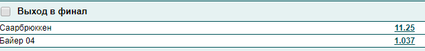 Букмекеры готовы дать фору (+2,5) гола на «Саарбрюккен» по равным котировкам. Проход команды в финал оценивается коэффициентом 20.00 в росписи «Леона». Риск большой, но ведь каким-то образом «Саарбрюккен» дошел до полуфинала, не правда ли? Впрочем, как основной вариант возьму всё же фору.