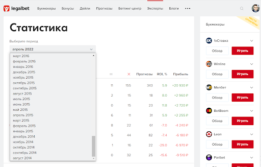 Прогнозы на Legalbet: статистика экспертов и капперов в апреле