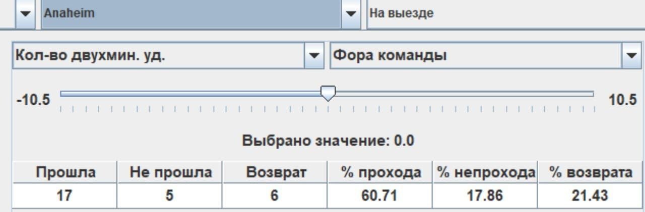 Самая большая разница удалений в лиге у гостевого «Анахайма» — 3,18 против 2,18 у соперника. Из 28 ставок на фору (0) «Дакс» 17 обернулись победами, шесть — возвратами и только пять — поражениями.