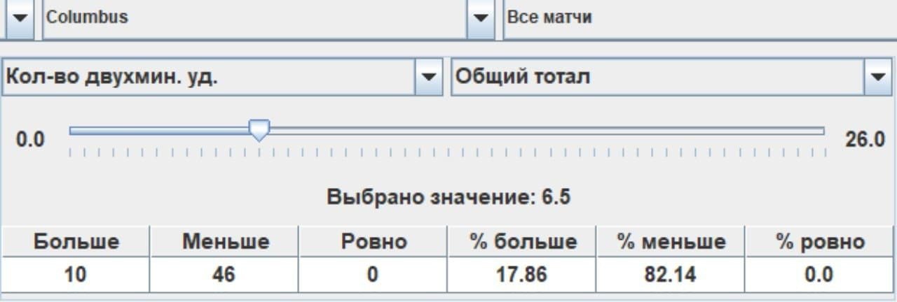 Абсолютный рекордсмен по ТМ — «Коламбус»: в среднем в матчах с участием этой команды судьи фиксировали лишь 4,73 малых штрафа, а проходимость стандартного тотала 6,5 дома и на выезде аж 82,14% — это 46 плюсов и только 10 минусов.