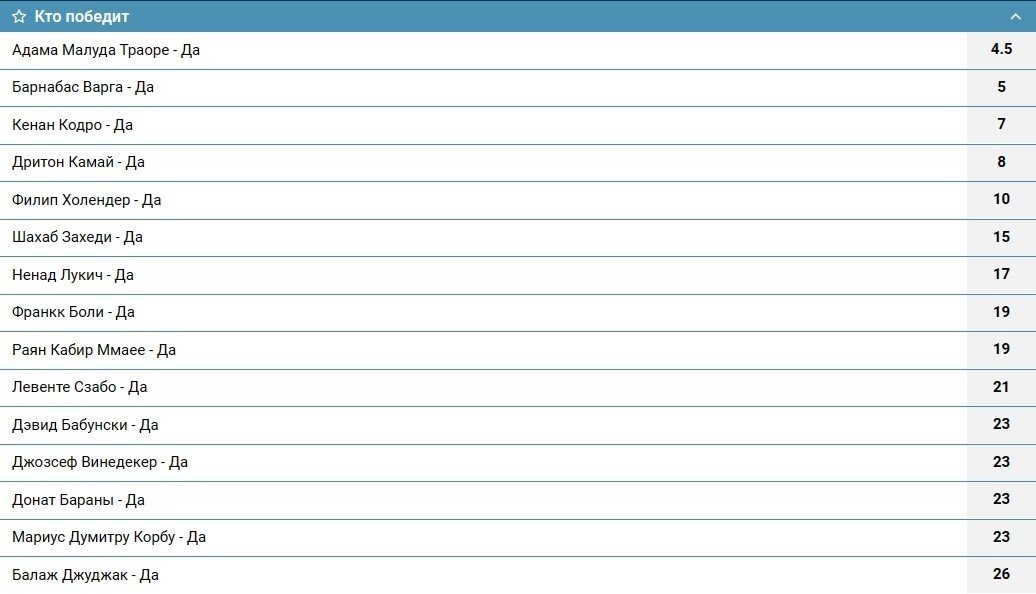Самое интересное, что в линии нет Эдуви Икобы из «Залаэгерсега», на счету которого тоже 10 забитых мячей. Прямо сейчас американец лидирует в гонке бомбардиров чемпионата Венгрии.