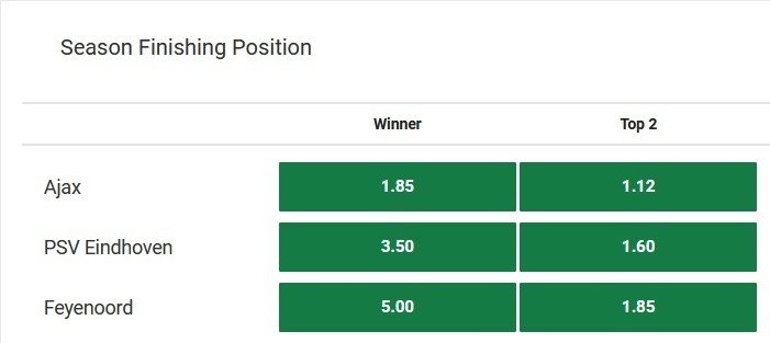 А потому интересно выглядит заход на то, что ПСВ станет чемпионом Эредивизи без учёта «Аякса»: и коэффициент приятный, и сразу 2 исхода чемпионской гонки перекрывает.