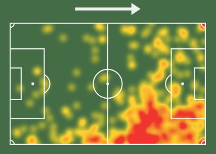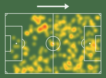 В этом сезоне бразильский нападающий провёл всего 10 игр в АПЛ, из которых 5 начал в старте. Его средний показатель времени на поле — ничтожные 44 минуты, но даже так он умудряется отдавать 1 ключевой пас за матч. И да, это не песок привезли на поляну, так выглядит тепловая карта Ришарлисона в этом сезоне АПЛ.