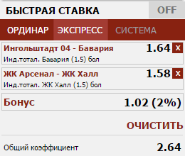 Ингольштадт 04 - Бавария: Инд. тотал Бавария 1.5б - 1.52