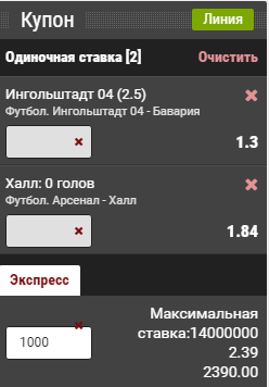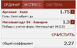 Арсенал - Халл Инд.тотал. Арсенал (1.5) бол 1.39