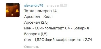 Например, вы считаете, что матч Арсенал - Халл закончится со счётом 2:1, а голы забьют Жиру (номер 12), Санчес (номер 7) и Умар Ниассе (номер 24). В сумме это 43 + прибавляем по аналогичной схеме игровые номера авторов голов в матче Ингольштадт - Бавария.