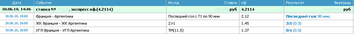 Да, тут уже нет Германии, потому что она позорно вылетела и сотворила самую громкую сенсацию турнира (коэф. 14.6 на их поражение против Ю.Кореи). Также вернул Францию вместо Англии. Потому что такая Франция очень напоминает классическую Италию, которая обычно всех мучает своим блевотным футболом, даже имея россыпь классных футболистов, но при этом добивается результатов. На Евро-2016 у них уже получилось прибавить в плей-офф, при отстойном футболе на группповой стадии, посмотрим как будет в этот раз.