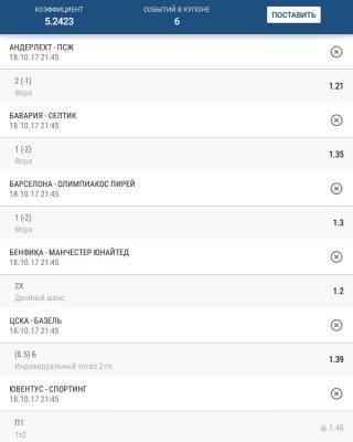 Барселона - Олимпиакос | Ф1(-2) | 1.32 |