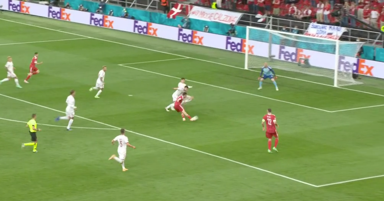 87' Расположение защитников сборной России при четвертом голе датчан. Классика.
