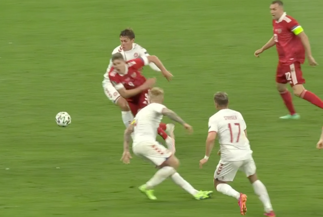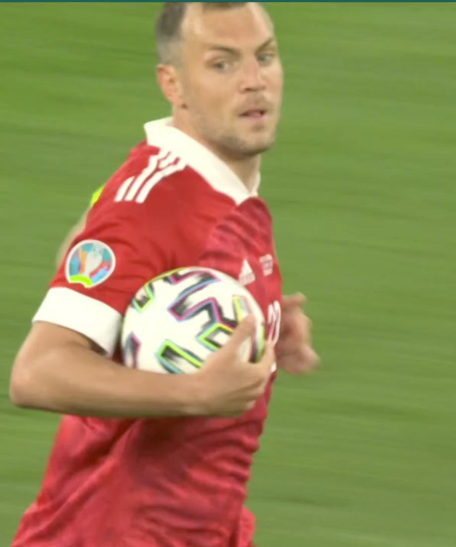 48' Кстати, мы говорили про то, что Дания очень бьющая команда, но наши в первом тайме в