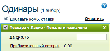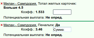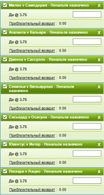 Если же в этом матче не будет пенальти, то выиграет тот кто отгадает пенальти в другом матче Серии А. Если отгадавших будет двое и больше, то так же победит тот у кого будет выше кф. При одинаковых кф. решат все карточки.