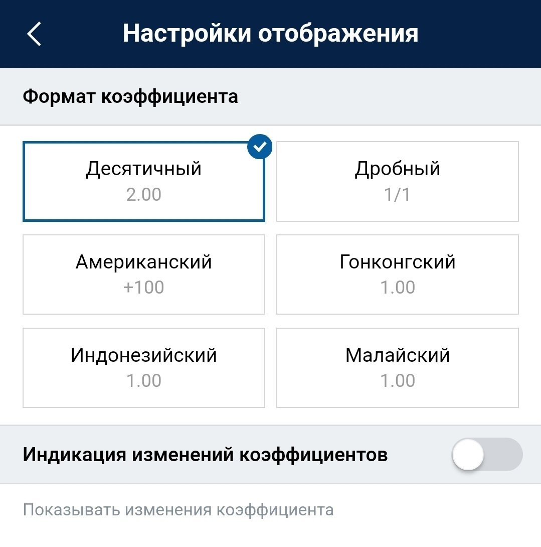 Гонконгский, малазийский и индонезийский формат коэффициента в «Марафоне»