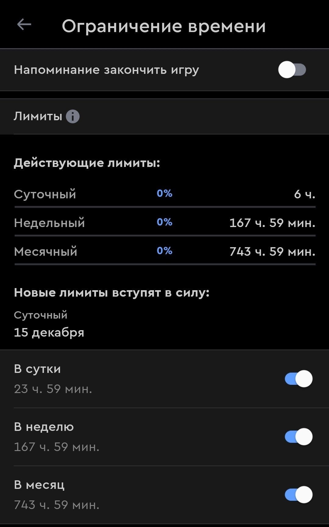 Установить лимит можно дневной, недельной и месячной активности. Всё здорово, вот только максимальные лимиты очень интересные:
