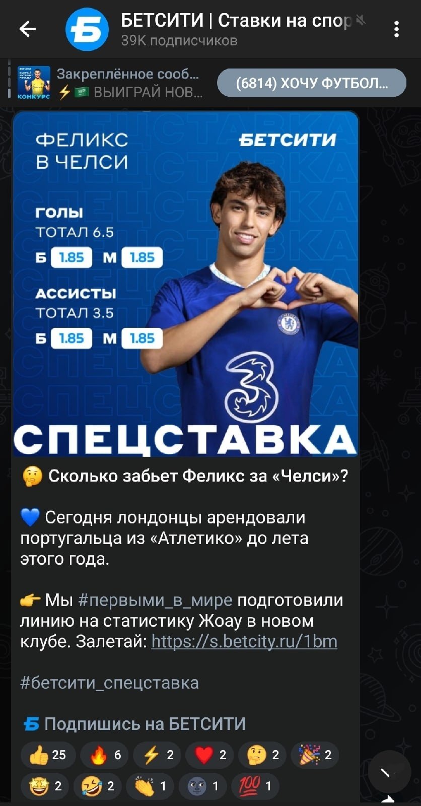 «Бетсити» отличается от конкурентов оперативной реакцией на инфоповоды: линия на Жоао Феликса в «Челси», например, появилась буквально через несколько дней после официального подписания игрока. Оттого следить за их