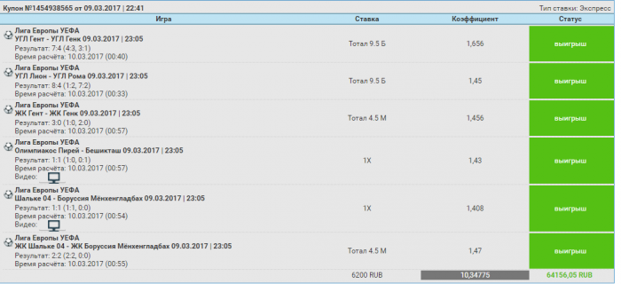 Многие знают, что в прошлом я профессиональный игрок, т. е. игрок, который зарабатывает с помощью вилок, но в то же время я очень люблю, что называется, "попанить", т. е. "пихать" все подряд без особых разборов, тактик и методов. Так вышло, что играя подобным образом летом 2015, я "потерял" около 1500 долларов. Причем, в то время 1 доллар легко можно было обменять на 65 и даже на 70 рублей. В итоге мой банк заметно сократился. Но я не привык проигрывать и даже такой приличный проигрыш меня не остановил: я продолжил "попанить" и дальше. В итоге в очередной такой день состоялся матч за Суперкубок УЕФА меж Барселоной и Севильей. Это был невероятный матч с огромным количеством забитых мячей, среди которых были просто шикарнейшие голы со штрафных от Банеги и затем дважды подряд от Месси. Наверное, и многие из вас его помнят. К 52 мин игроки Барселоны вели со счетом 4-1, несмотря на то, что на 3 мин счет был открыт именно Севильей. Я даже не помню, на что я "оформлял" в этой игре, но я помню, что все опять горело к чертям. Затем игроки Севильи довели дело до 4-3 к 72 мин, и я понял, что камбэк здесь неизбежен. Чтобы отыграть проигрыши, мне надо было либо оформлять много, либо искать что-то невероятное с огромным коэффициентом. В итоге я пошел вторым вариантом и в LIVE линии Бет 365 решил совершить, как казалось бы в тот момент, практически невероятный вариант пари: я оформил на то, что Евгений Коноплянка, только-только появившийся на поле на 68 мин в своем дебютном матче в Европе, да еще и в такой важный момент, сможет забить Барселоне... Коэффициент был равен 23, а вложил я в это дело 40 долларов. Оставалось лишь надеяться... А когда на 81 мин Евгений сравнял счет, мои эмоции было просто не передать! Чистый выигрыш составил 880 долларов со ставки в 40, что позволило мне отыграть часть денег, проигранных ранее... Это было что-то с чем-то!!!