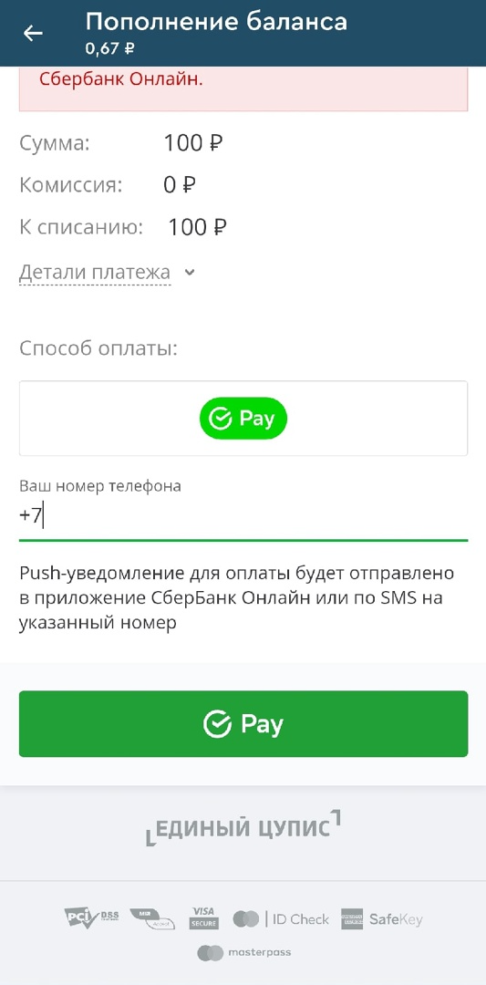 Как пополнить баланс с помощью SberPay?