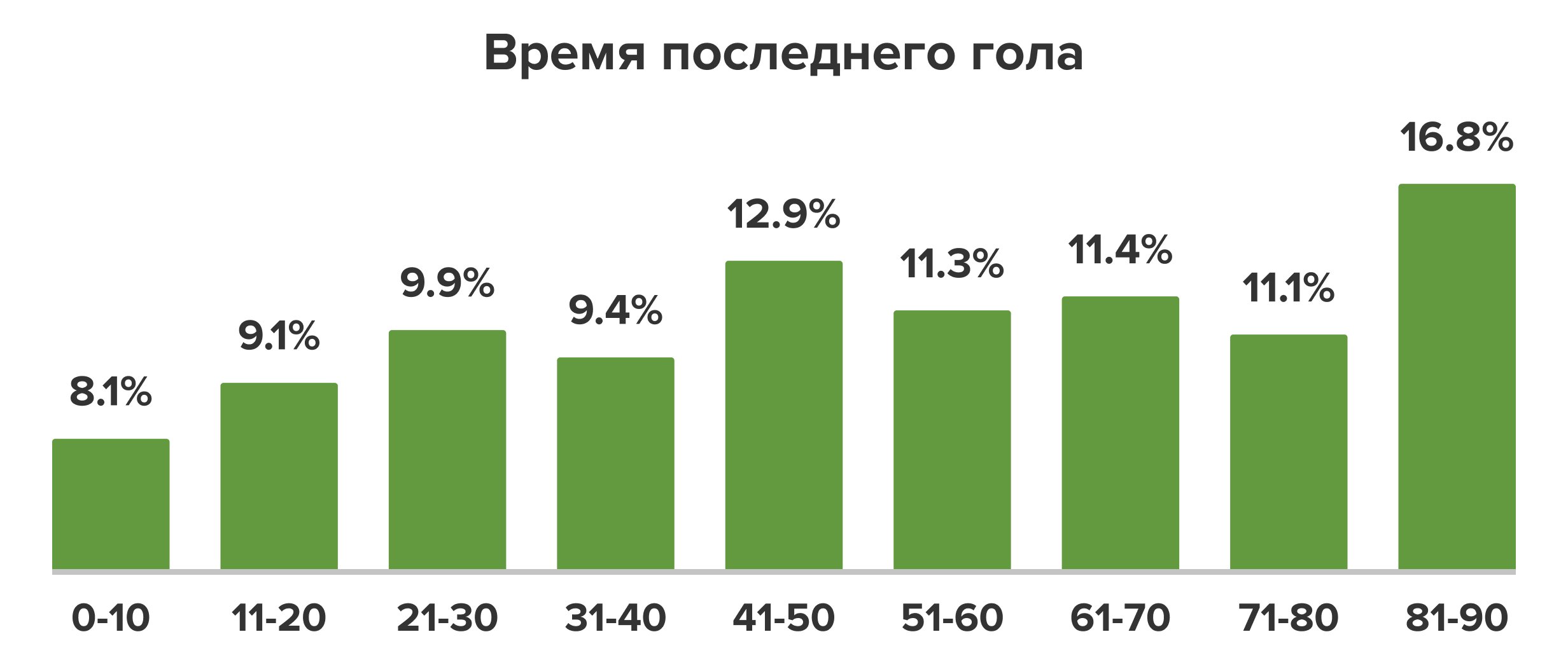 Факт пятый: последние 10 минут матчей — самые выгодные для ставок на голы