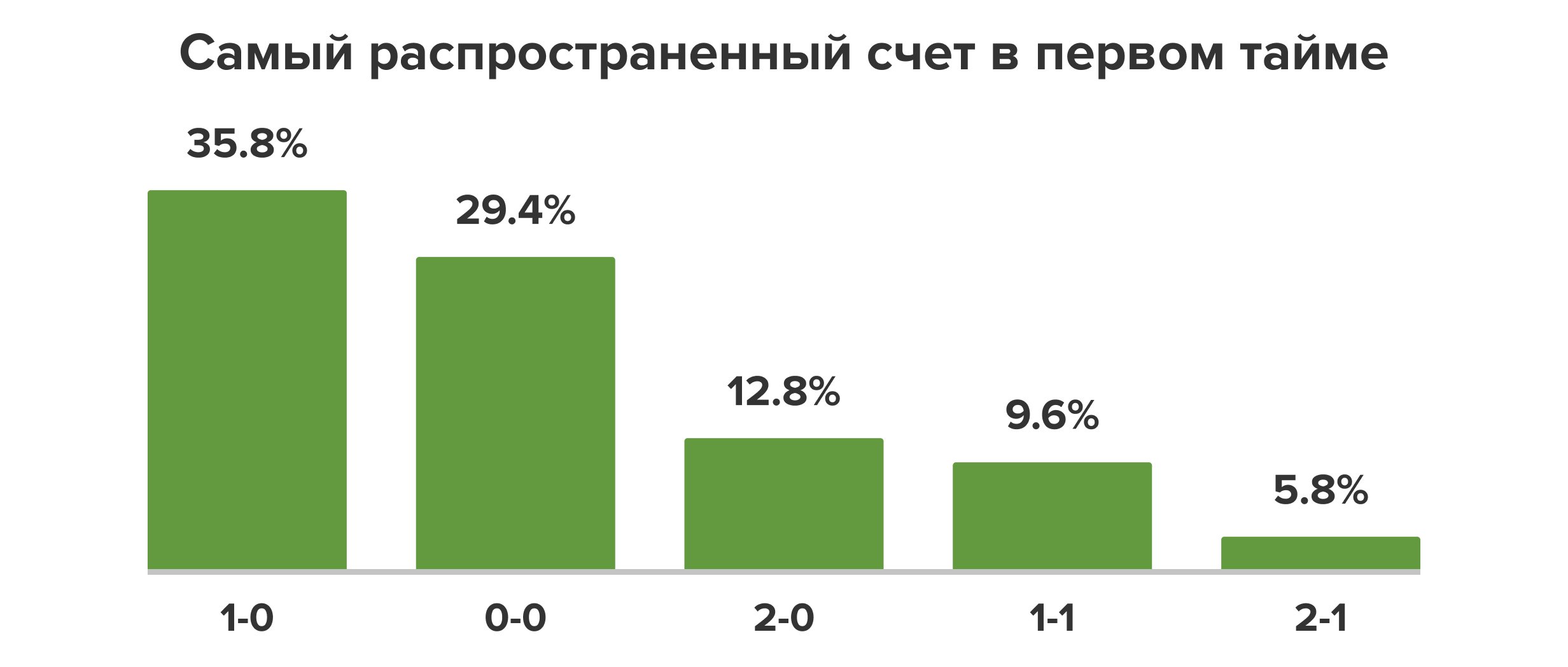 Факт четвёртый: в 65% матчей в первых таймах забито меньше двух голов