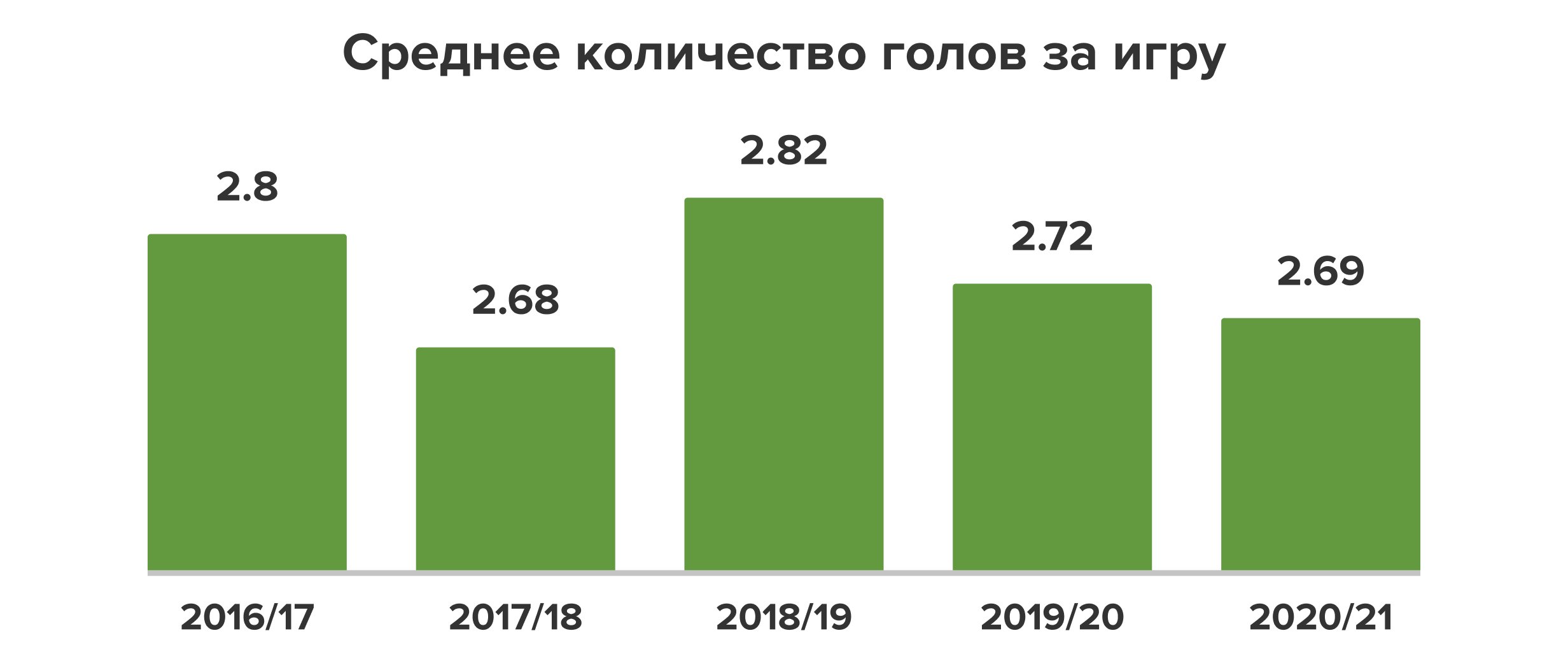 Средняя результативность и количество верховых игр в прошлом сезоне снизились. Если сравнивать с пятилетней давностью, то на целых 4% и 0,11 гола в среднем.